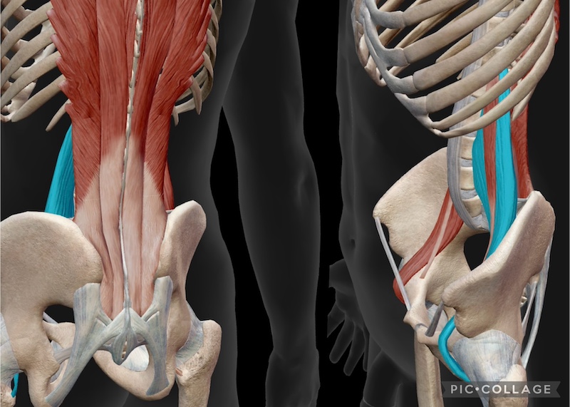 右の図では大腰筋が腰から股関節の前側までつながっているのがわかると思いますがこの繋がりこそが、座位での症状憎悪と関係します。