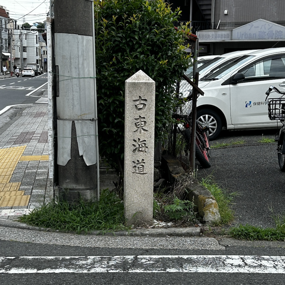 神明社側の「古東海道」の石碑、鍼灸院 feel の目の前の道も旧東海道です。