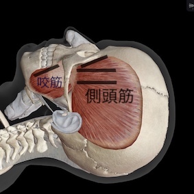側頭筋と咬筋のトリガーポイントに治療をしたところ、側頭筋の方がより痛いところに響く(いつも痛いところにズーンとする)ということでした。
