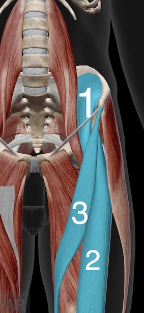 太ももの内側を斜めに走る細長い筋肉で、脚を曲げたり内側にねじる動きに関わります。