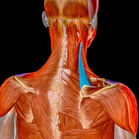 〜左側の肩が僧帽筋です。僧帽筋の一段下に肩甲挙筋があります。ダイレクトに届く鍼ならではのアプローチ〜