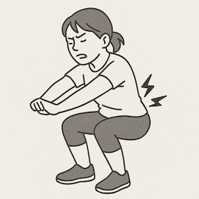 ■ 痛みの始まり:スクワット直後にお尻→腰へと広がる激痛